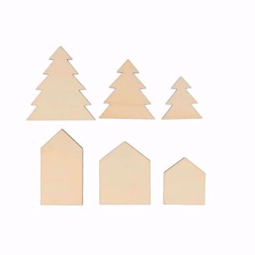 Miniature Case e Abeti in legno Artemio | Confezione da 6 pezzi | Ideali per creazioni natalizie e invernali fai da te